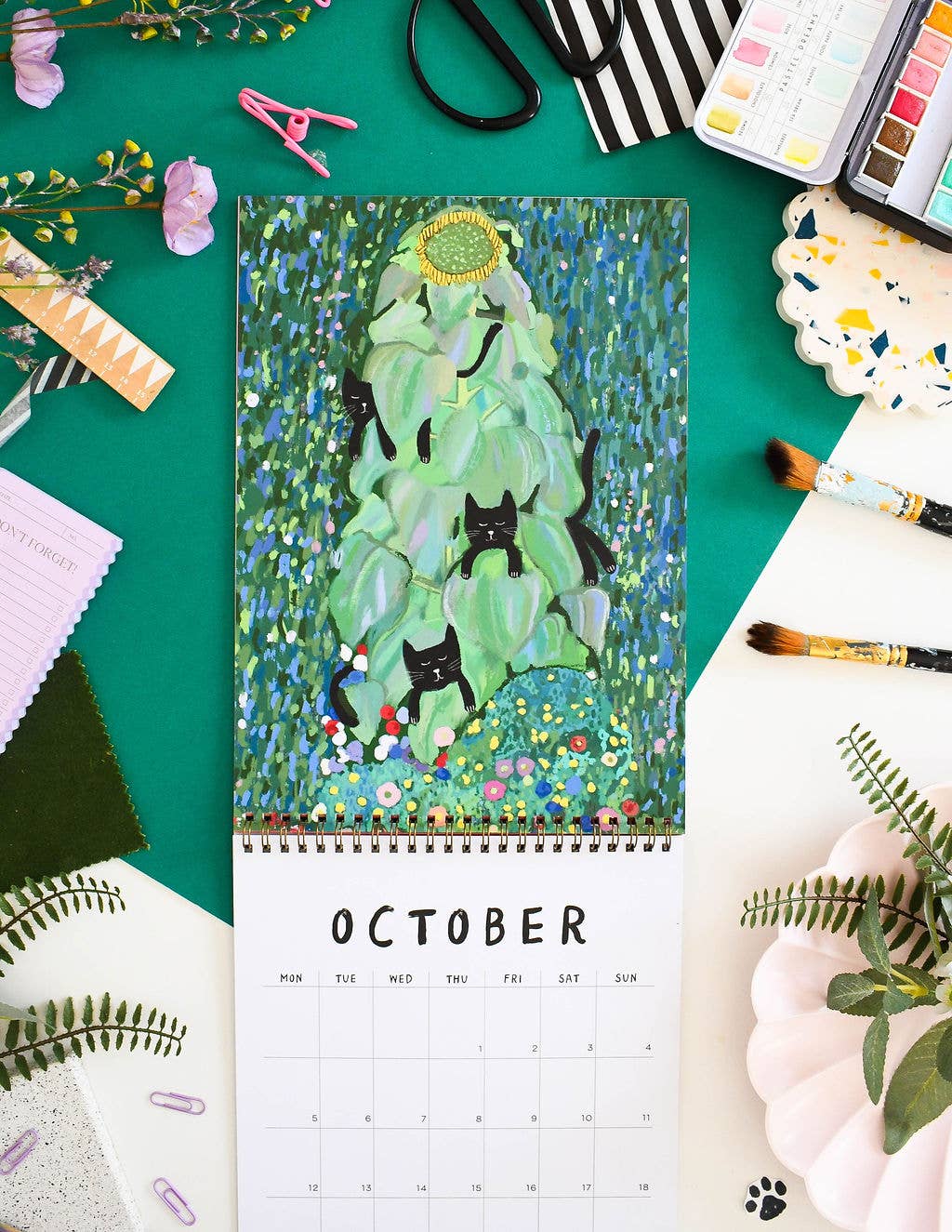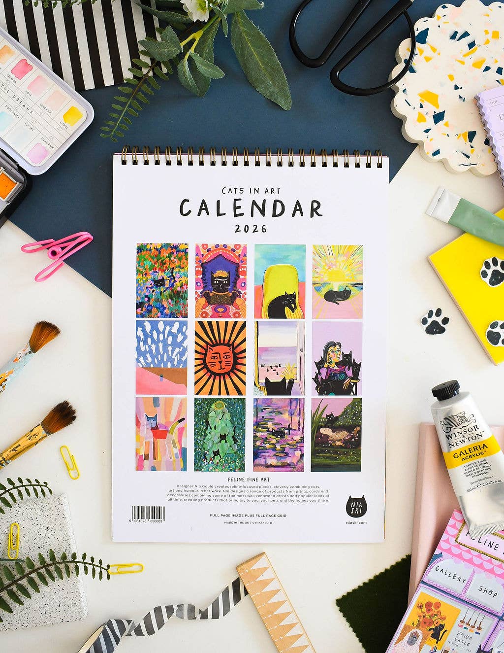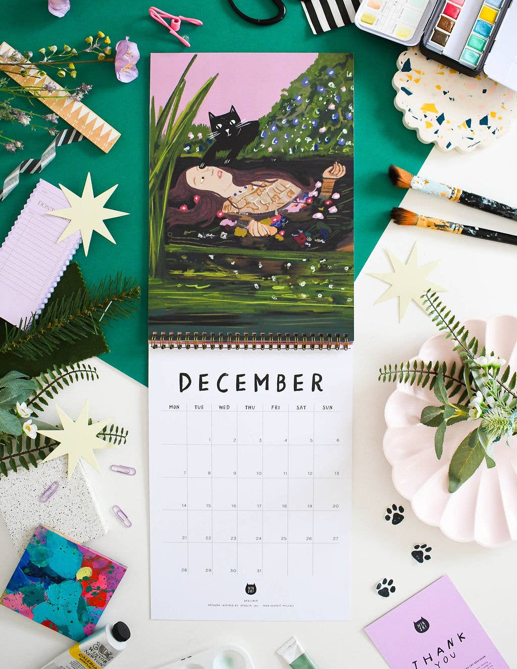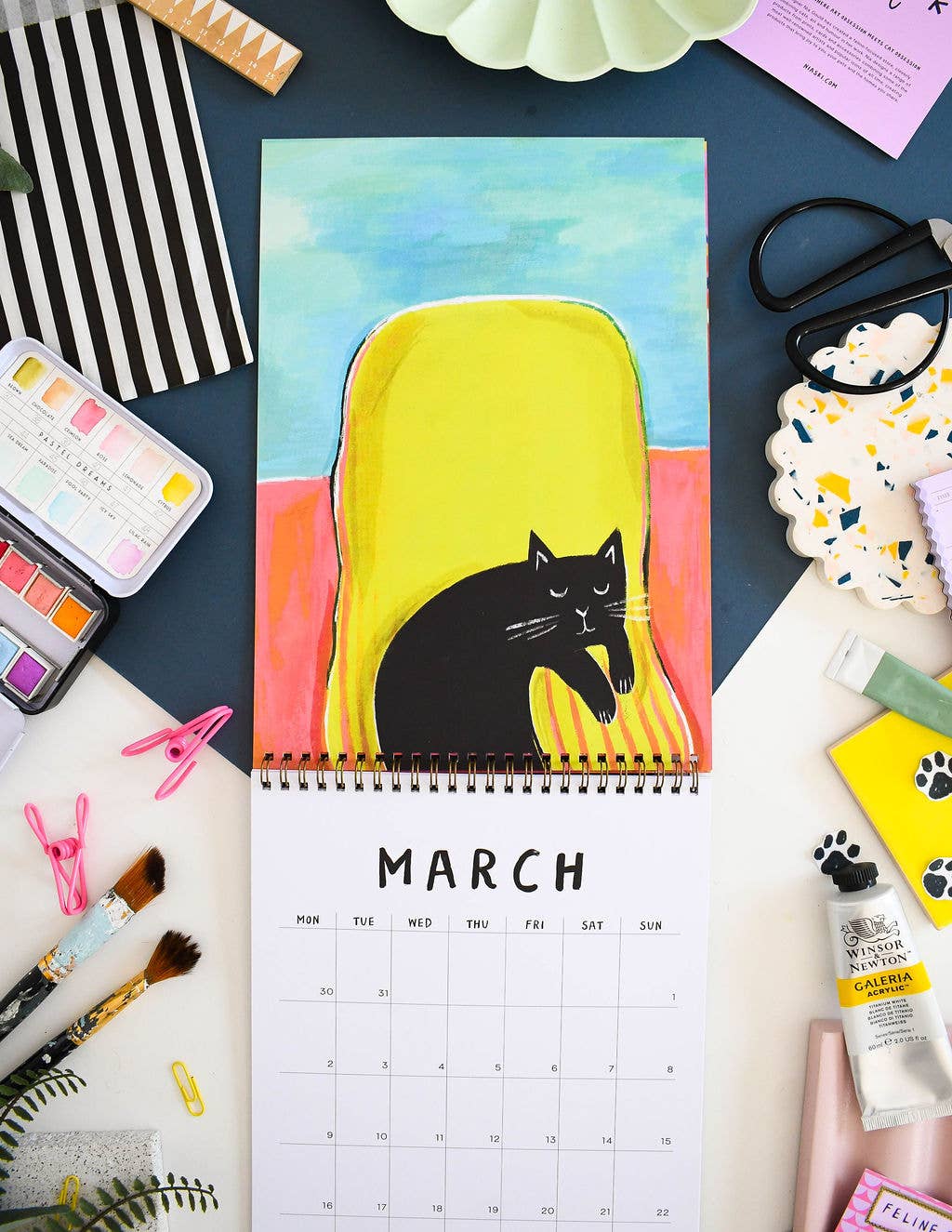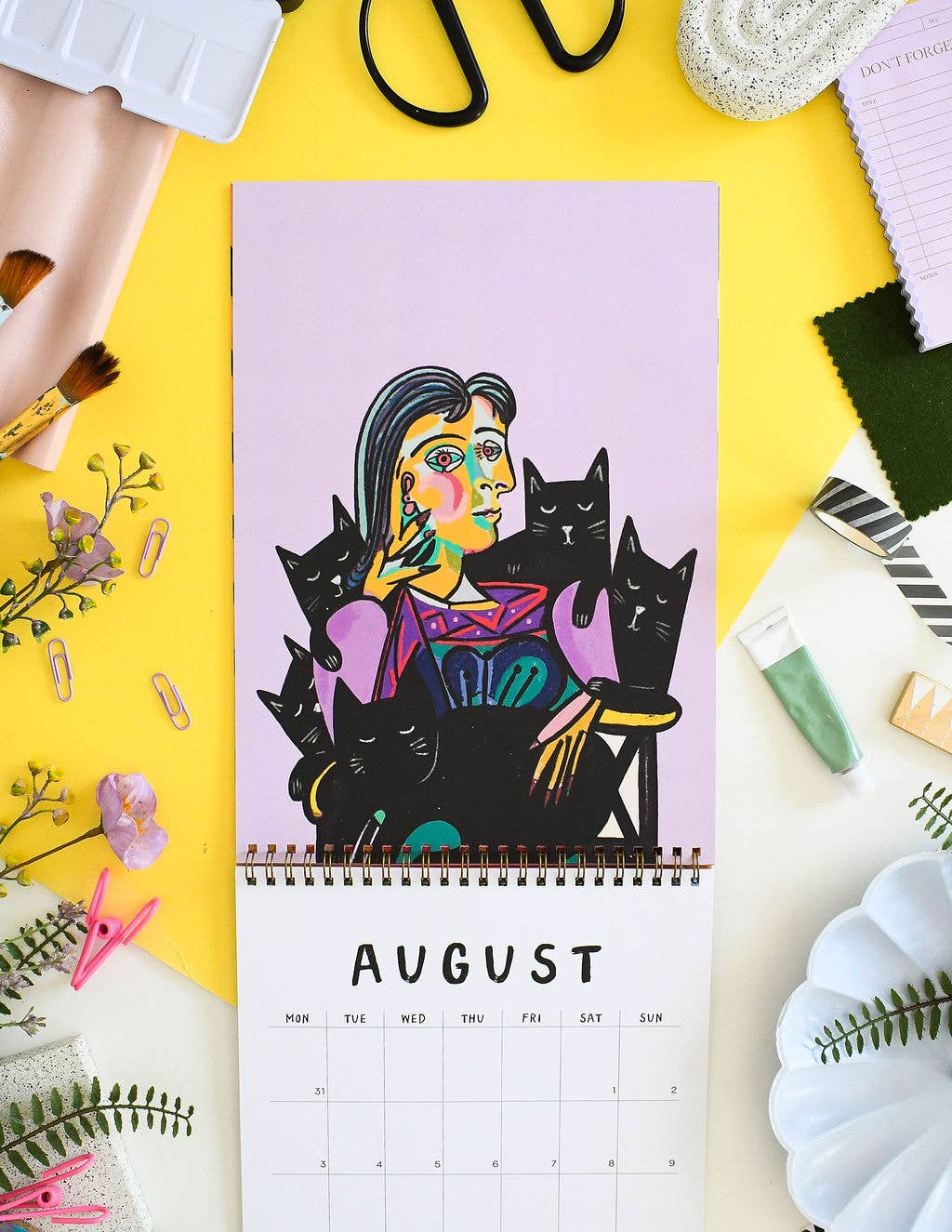 Jan - Dec 2025 A beautifully illustrated calendar with each month featuring an illustration based on the artwork of some of our most loved artists with a little feline addition.