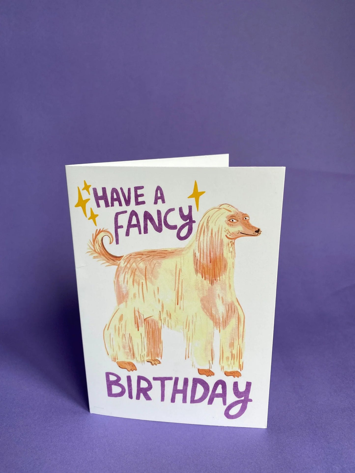 Have a Fancy Birthday afghan hound Dog A6 Greeting card - animal illustration Birthday Card