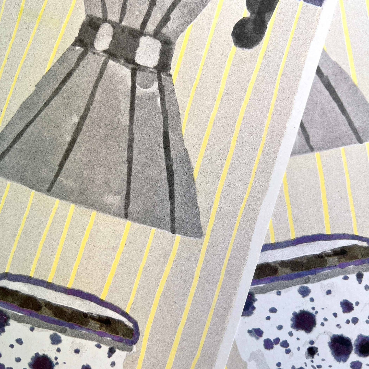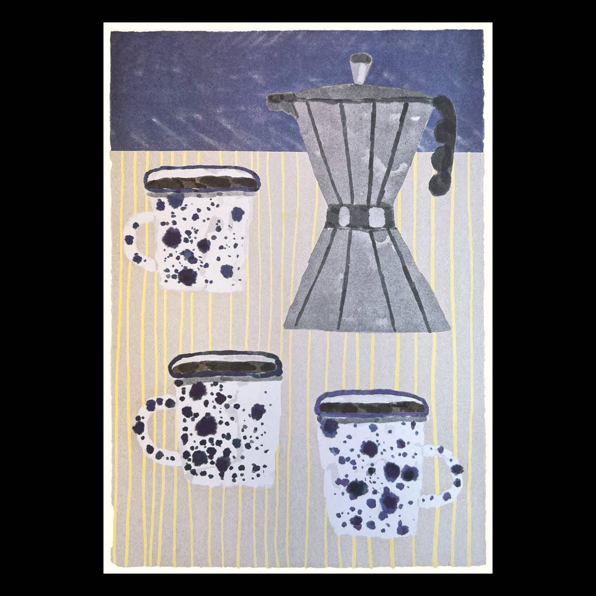 Coffee Pot & Mugs A3 Risograph Print