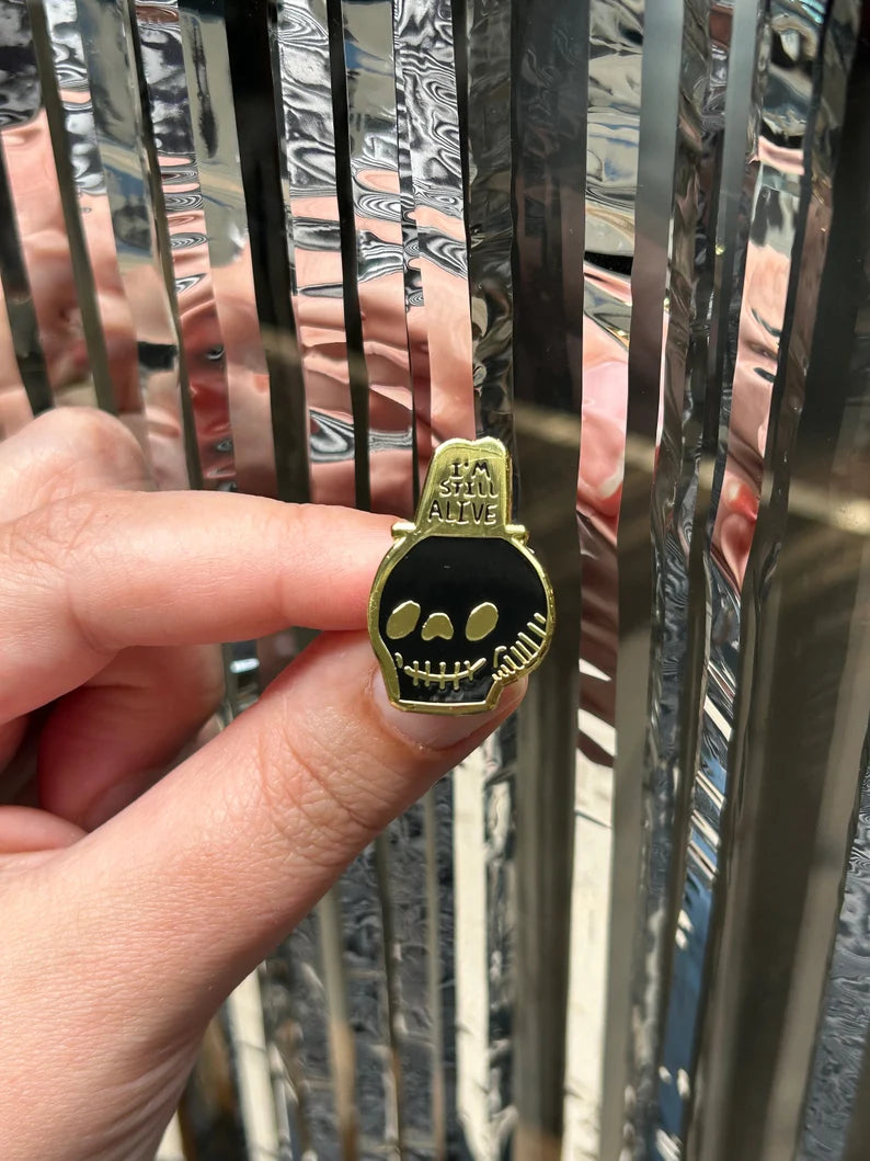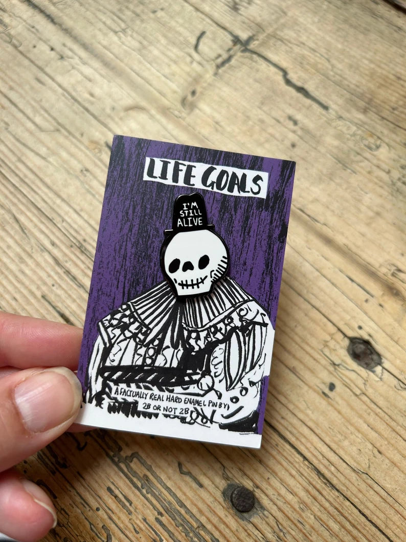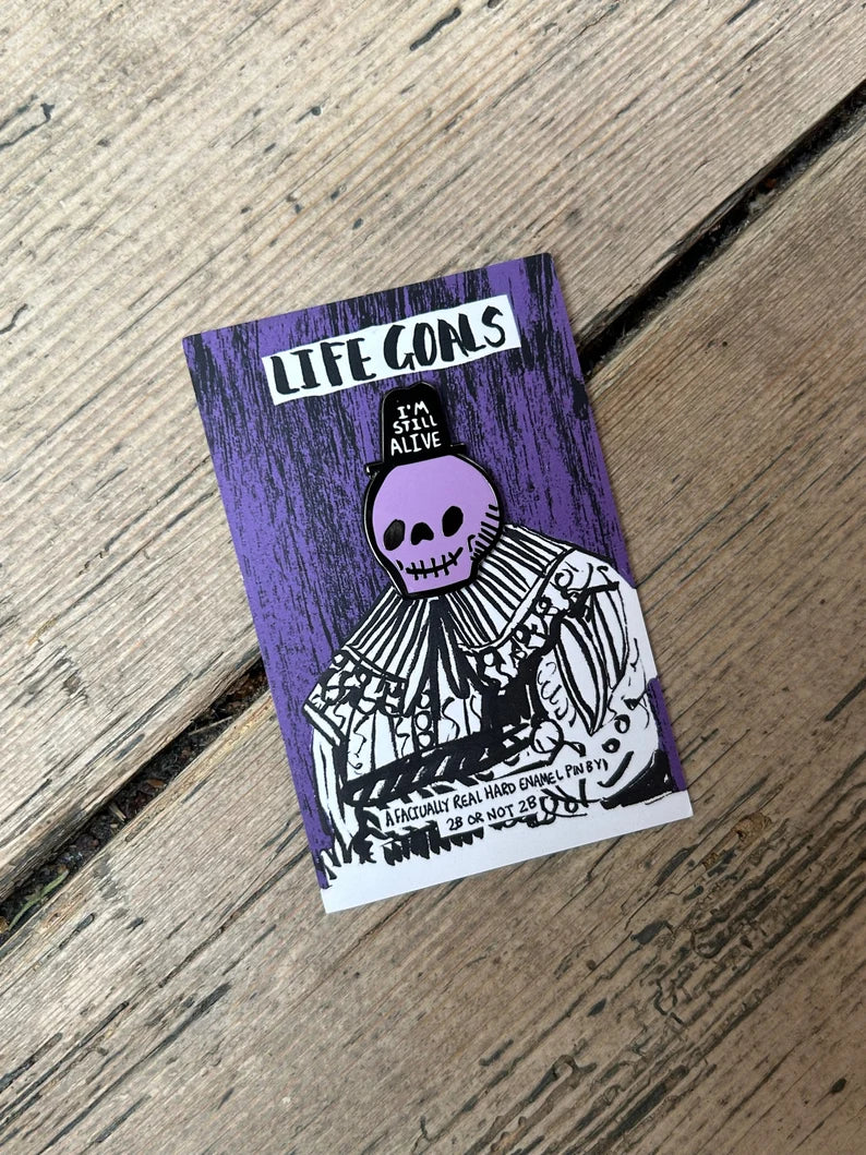 This enamel pin is a tongue in cheek reminder that life isn’t so bad, really. With three different colour variations, show your positive and spooky side with this skeleton and his lovely fancy hat!