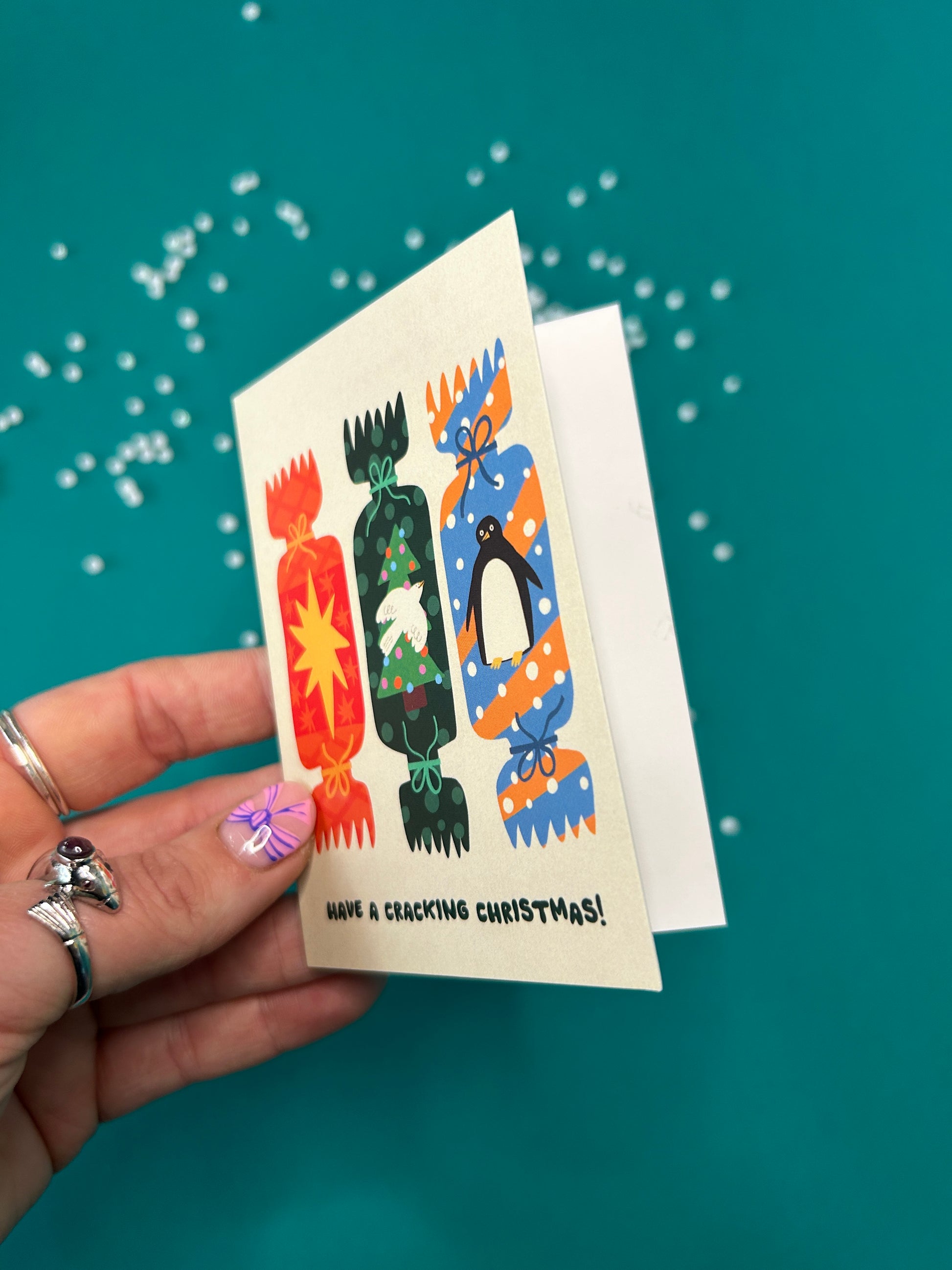 Printed on sustainable card stock, glossy and durable on the outside, plain on the inside perfect for writing your messages