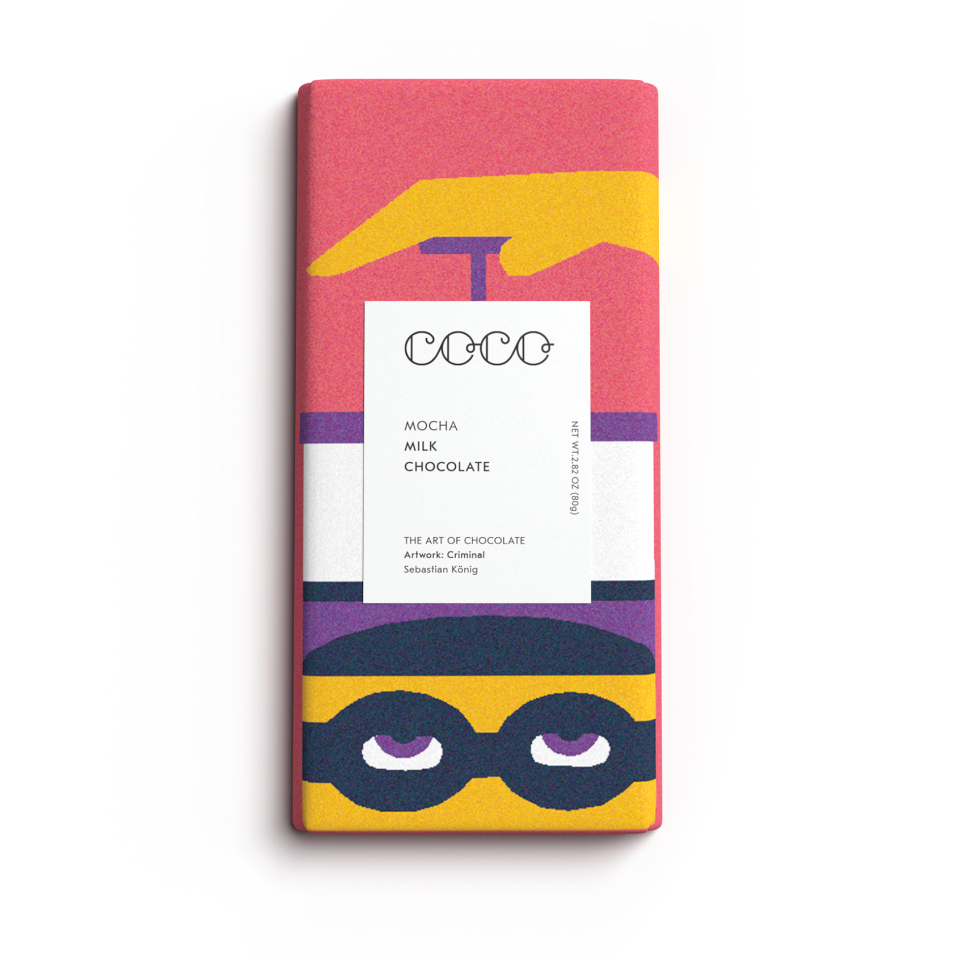 Ingredients: Sugar, cocoa butter, cocoa mass, milk powder (14.5%), coffee (<1%), emulsifier: non-GMO soya lecithin, natural coffee flavour, natural vanilla flavour. Cocoa solids 40% minimum.