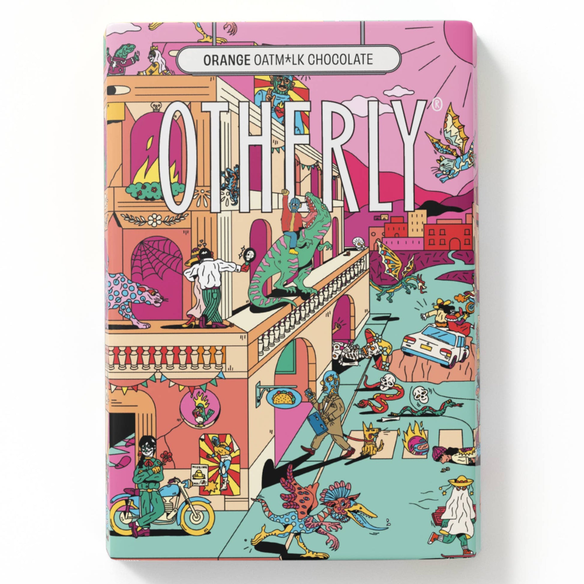 OTHERLY Orange Oatm*lk is the perfect plant-based chocolate 43% cacao content with orange essential oil: with each bite, the orange-flavoured oatm*lk chocolate bar offers a delightful balance of flavours, leaving you with a lingering aftertaste that is both indulgent and invigorating. It's a sensory journey that captures the essence of citrus and chocolate in a harmonious, blissful union, where the orange flavour is distinct yet not overpowering, adding a refreshing twist to the authentic richness of our plant-based chocolate.