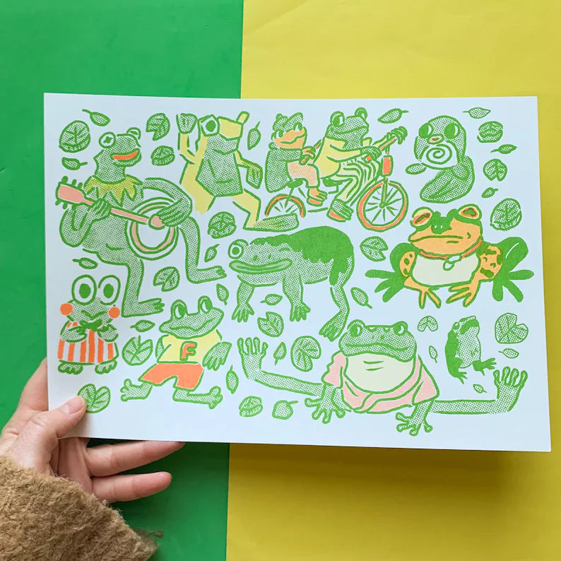 - Fantastic Famous Frog Friends A4 Riso Print
