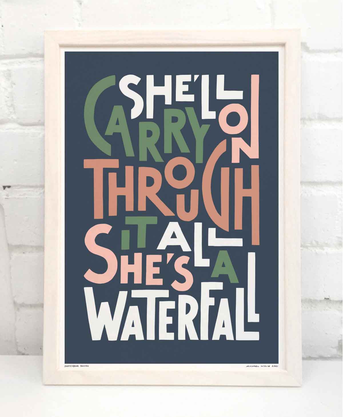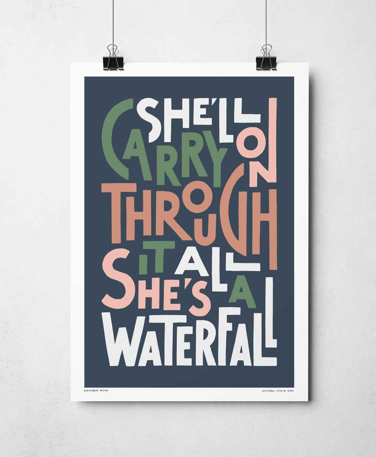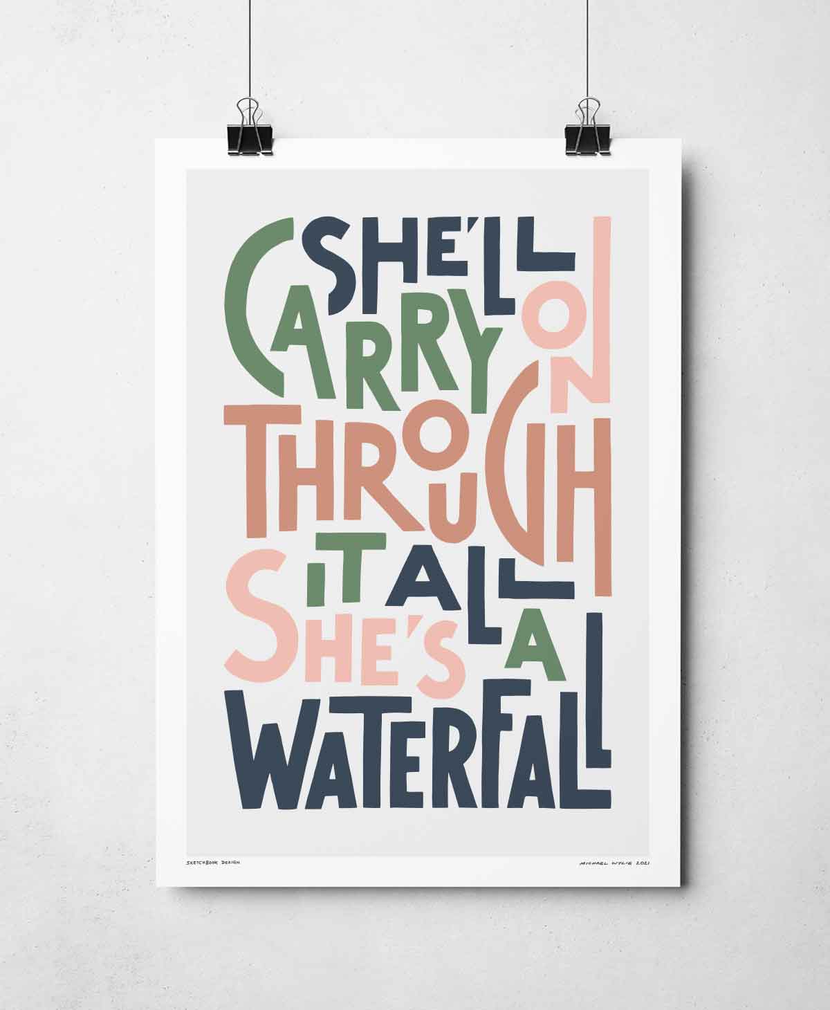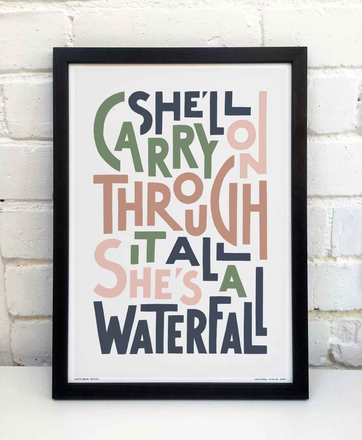 She's A Waterfall Iconic Song Lyric Typography Print