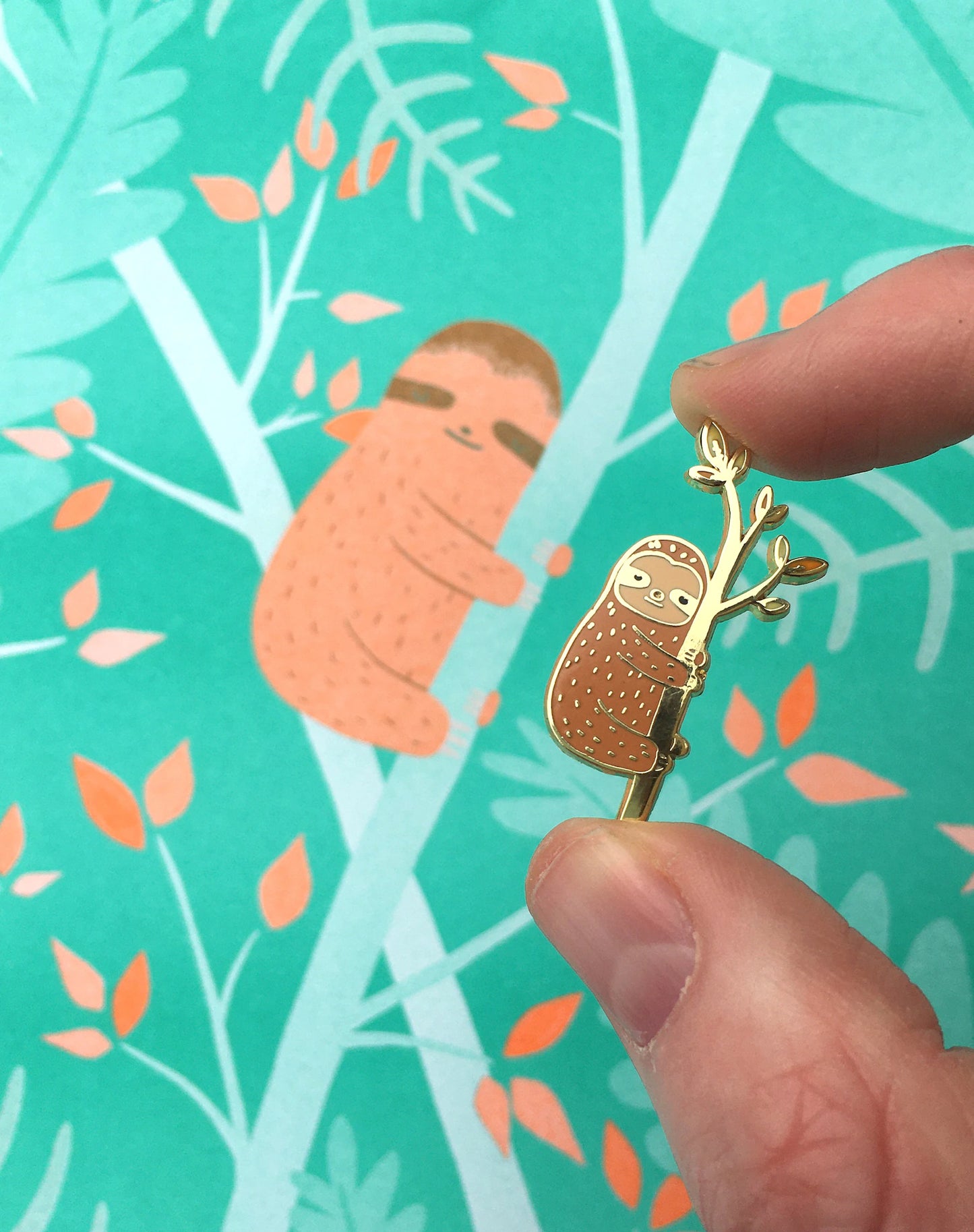 Show your love for the sleepy sloth with this cute pin accessory that will add a great custom touch to your belongings, such as hats, t-shirts or bags.