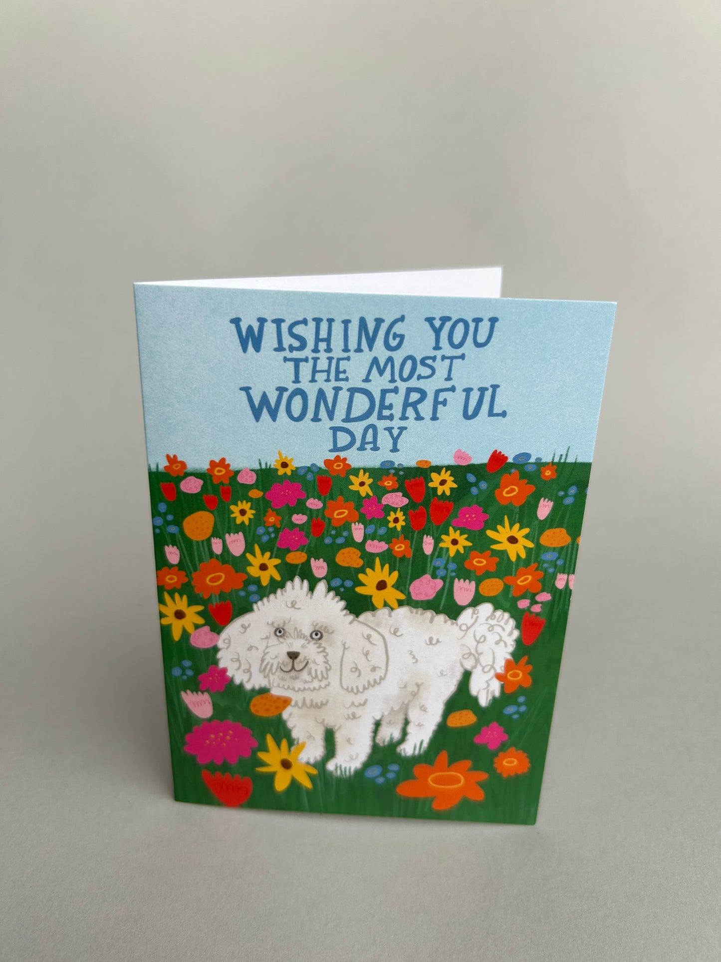 Wishing You The Most Wonderful Day Flower Dog Greeting Card by Fernandes Makes