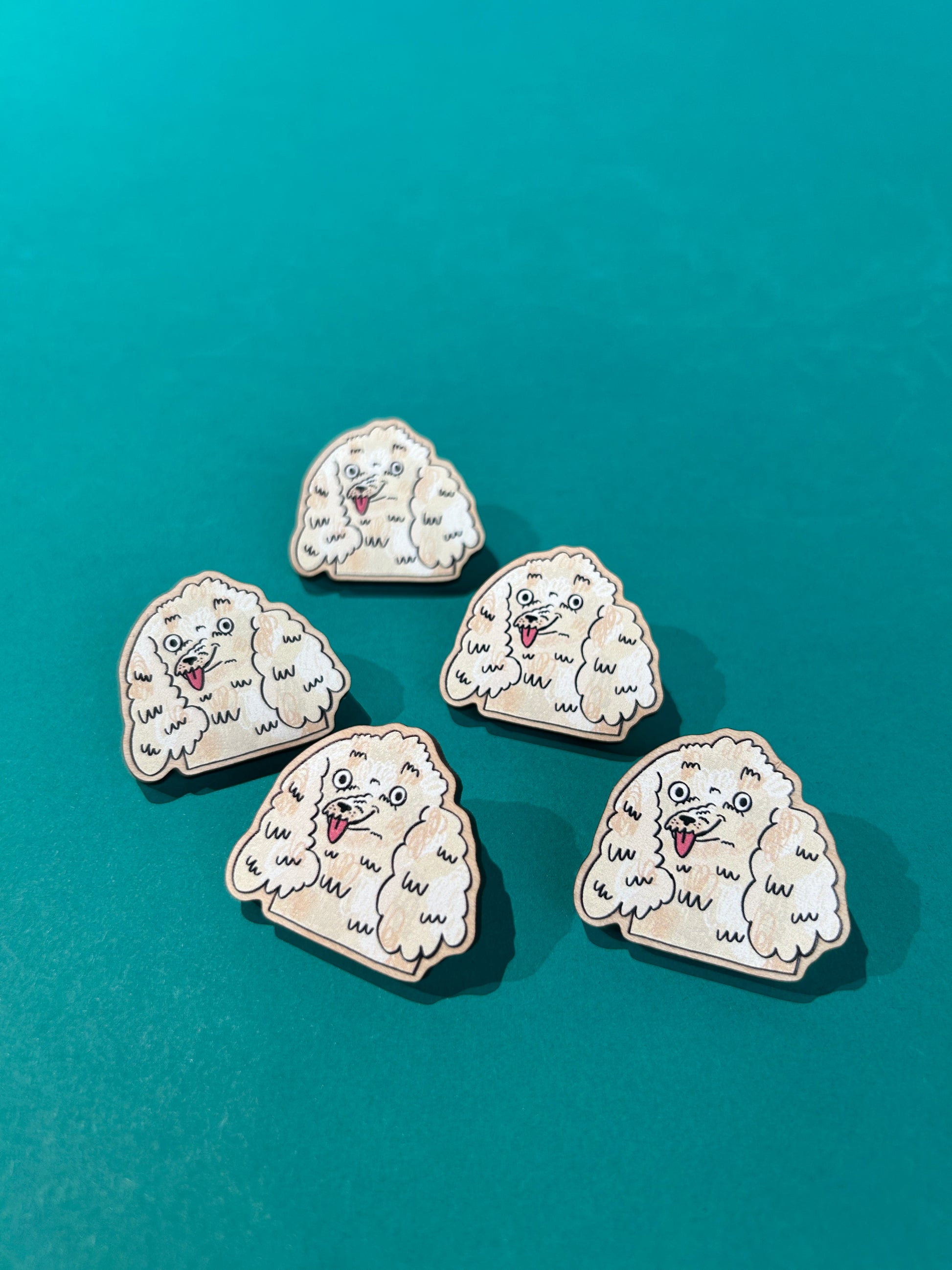 This wooden pin badge was manufactured in the UK, made from responsibly sourced, fast-growing woods. The badge measures 4mm thick and made from Maple veneered MDF.