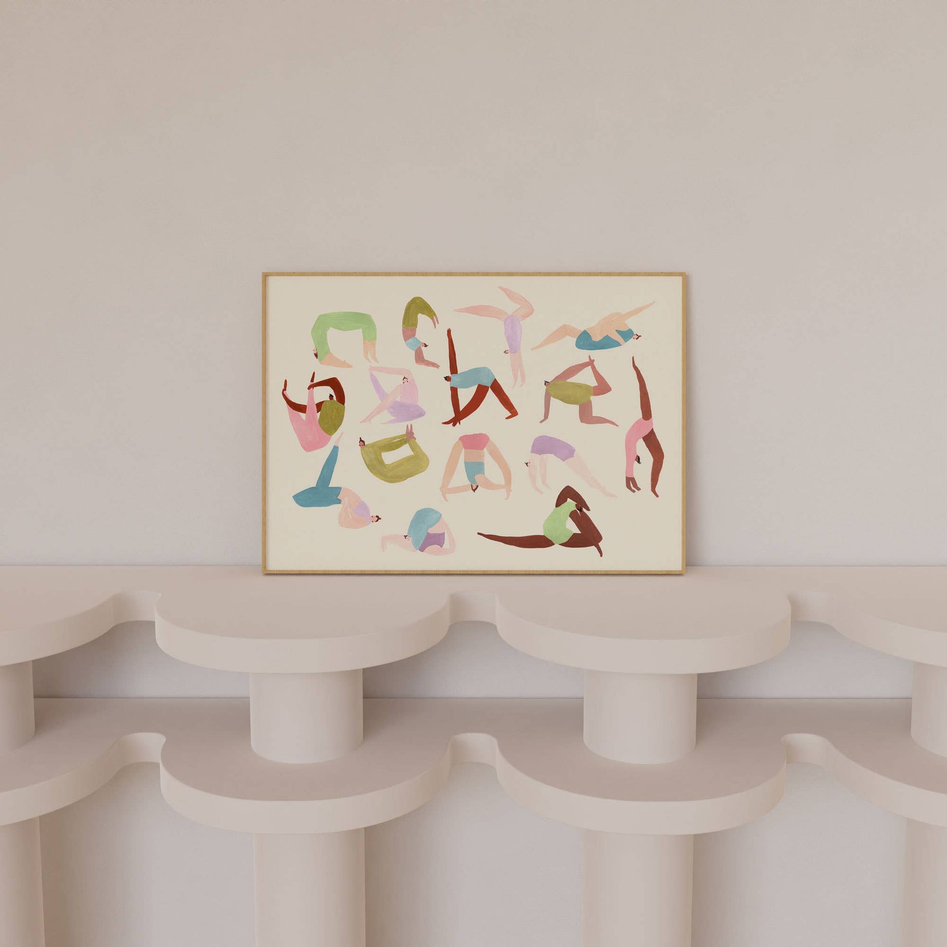 An array of bendy yoga ladies in their fashionable activewear show strength, flexibility and balance in this art print. Whether you're a seasoned yogi or simply appreciate the beauty of the practice, this print is sure to inspire and uplift you. Available in A3 | 29.7 x 42.0 cm | 11.7 x 16.5 in