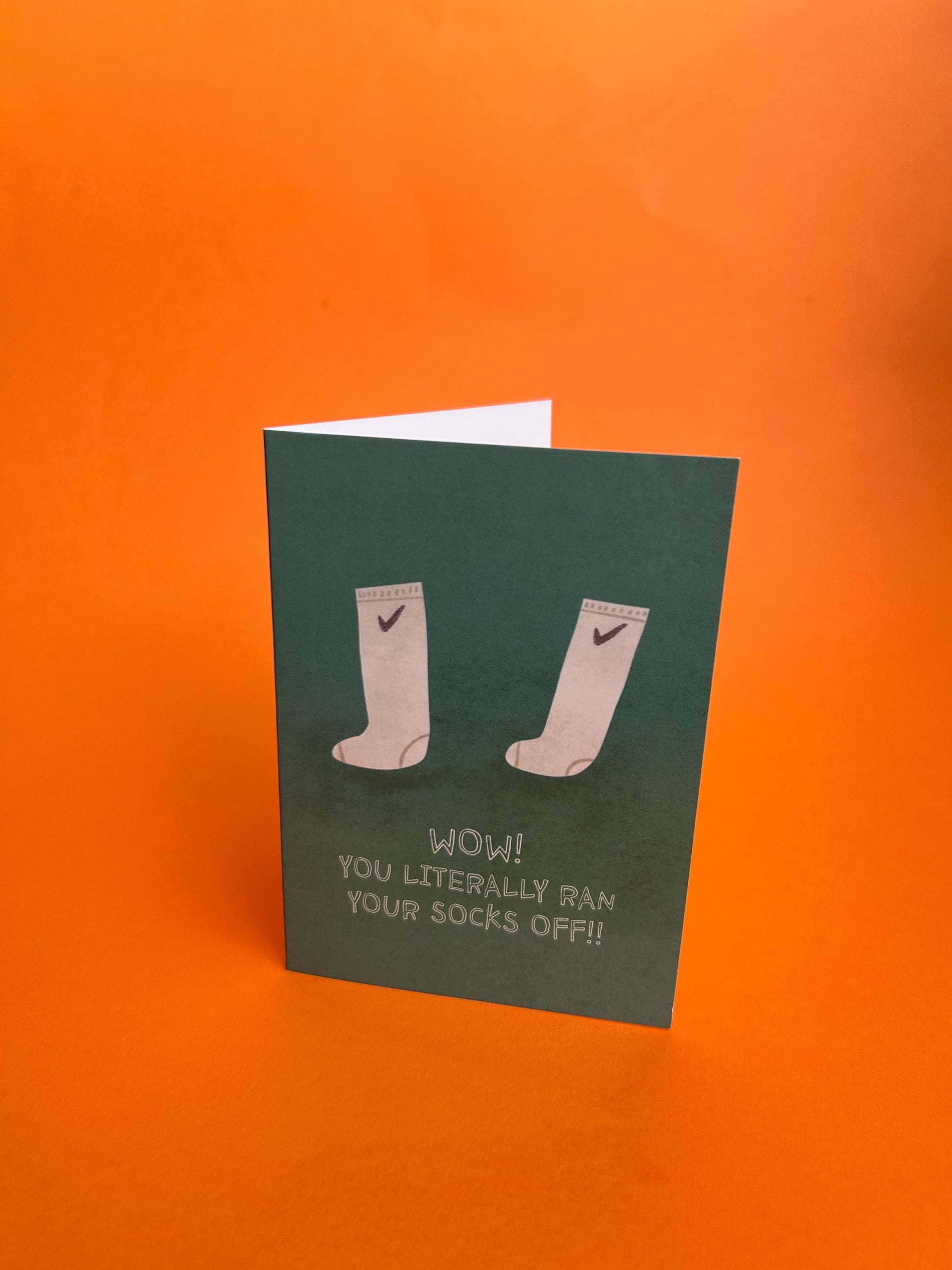 You Literally Ran Your Socks Off Greeting Card by Fernandes Makes